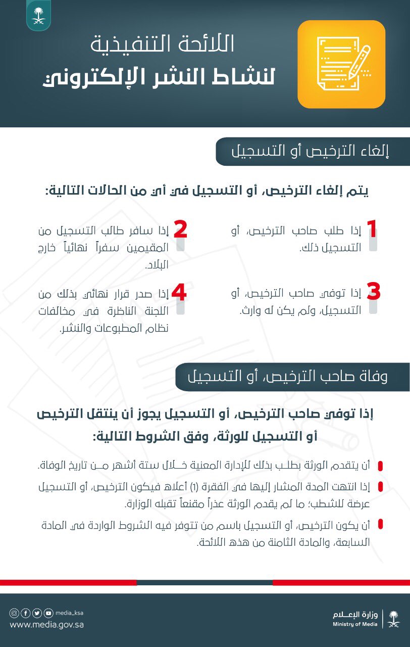 وزارة الإعلام On Twitter لوائح وأنظمة متى يتم إلغاء الترخيص أو التسجيل لنشاط النشر الإلكتروني
