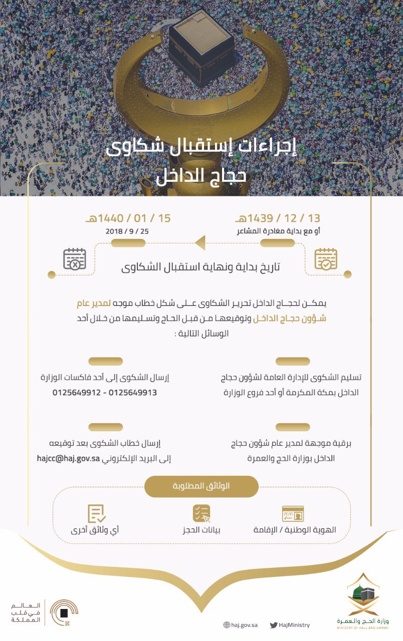 وزارة الحج والعمرة On Twitter وزارة الحج والعمرة توضح إجراءات استقبال شكاوى وملاحظات حجاج الداخل بعد مغادرتهم مشعر مني